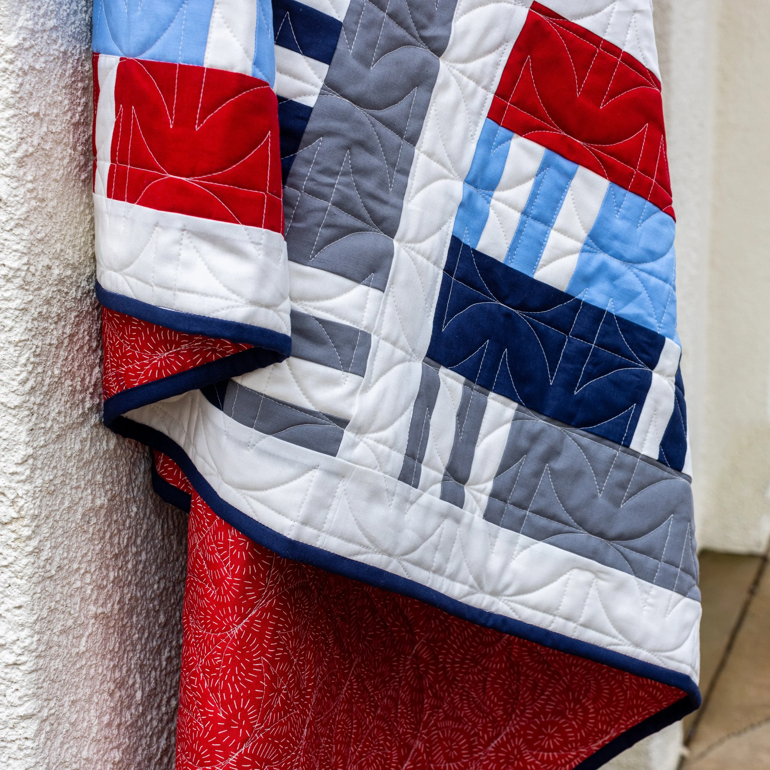 Lilo quilted our sample using a panto called White Space designed by Jess Zeigler of the Longarm League. It creates the most amazing texture and adds so much delightful movement to a quilt made of a lot of straight lines.